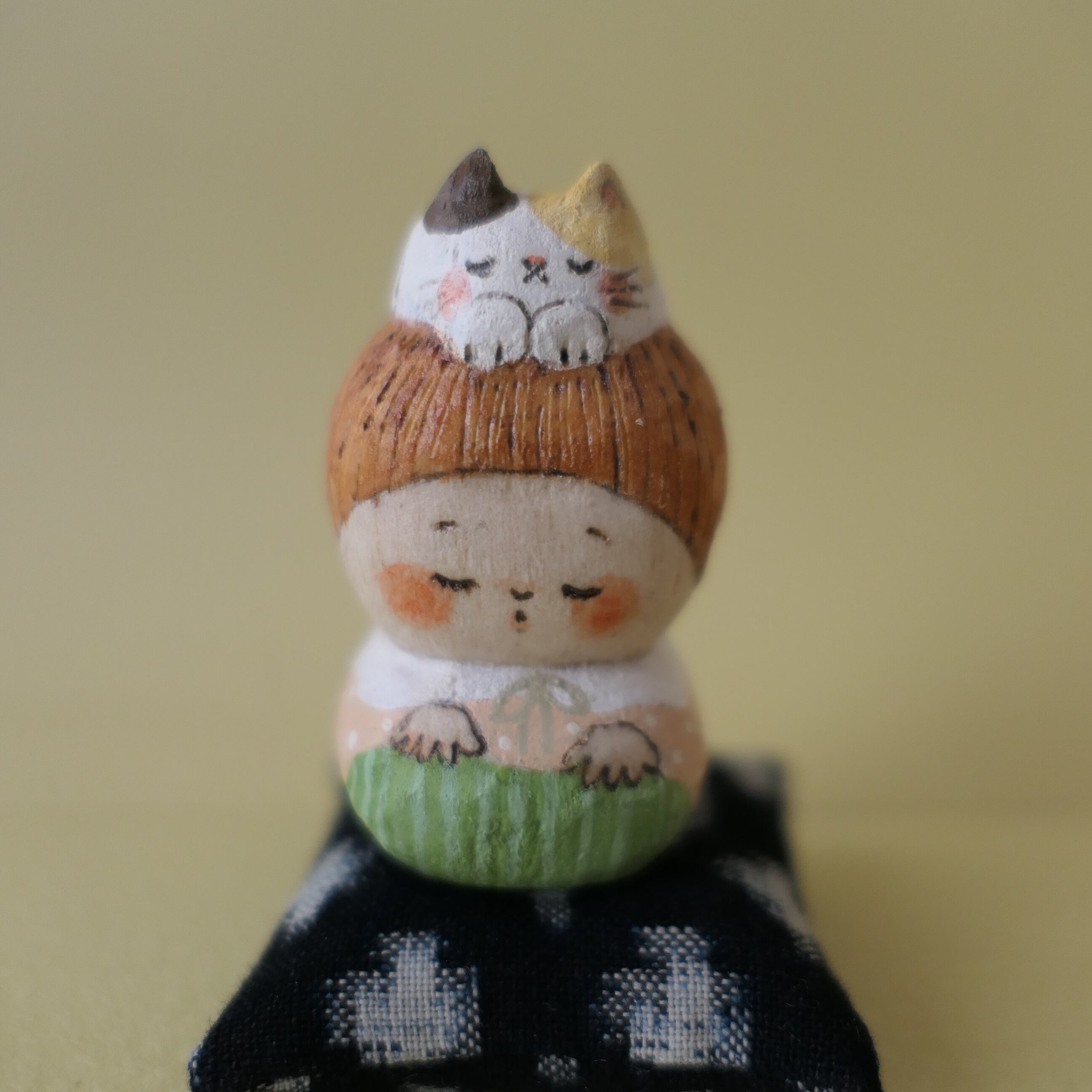 バルサ材を削り、アクリル絵の具、ニスで仕上げてあります。