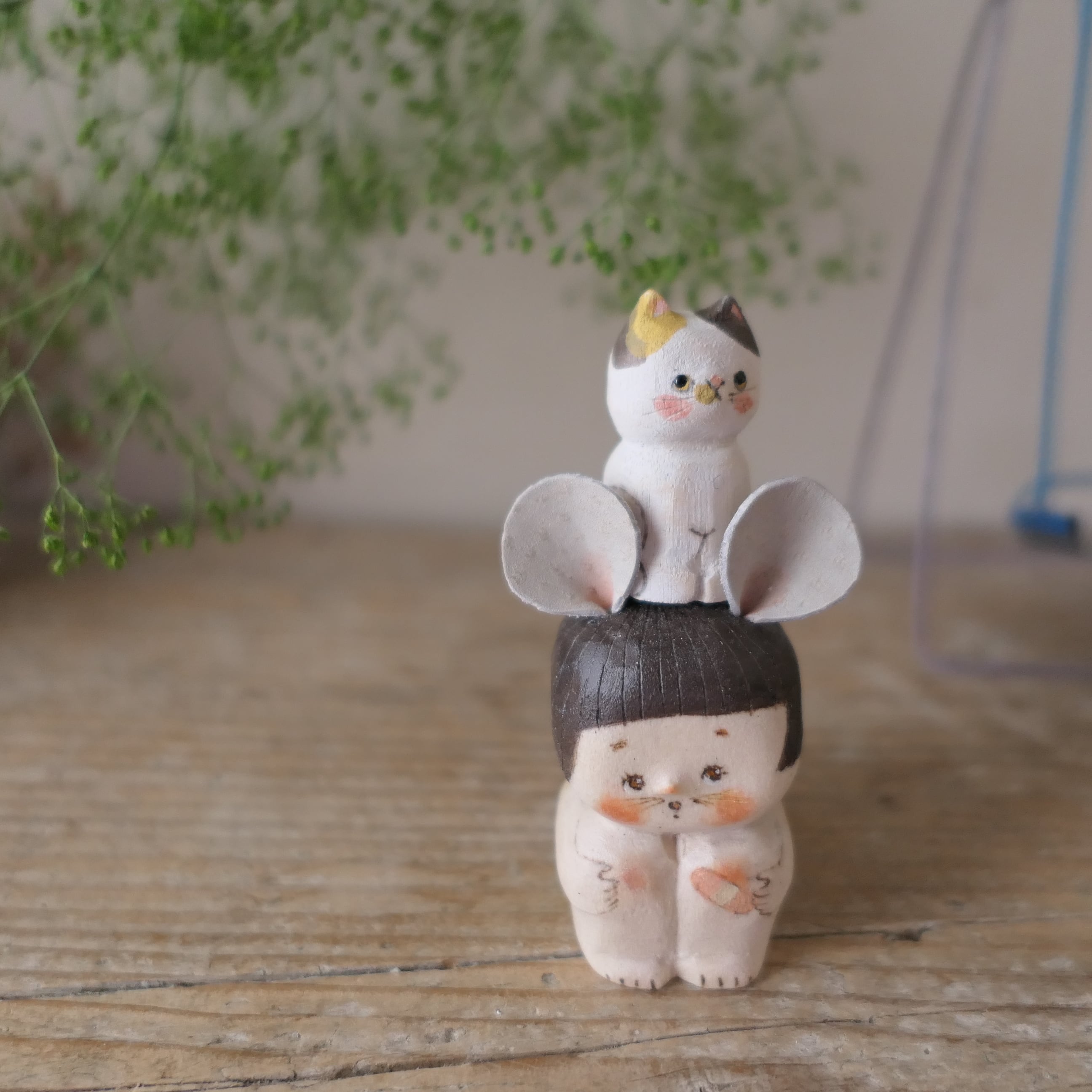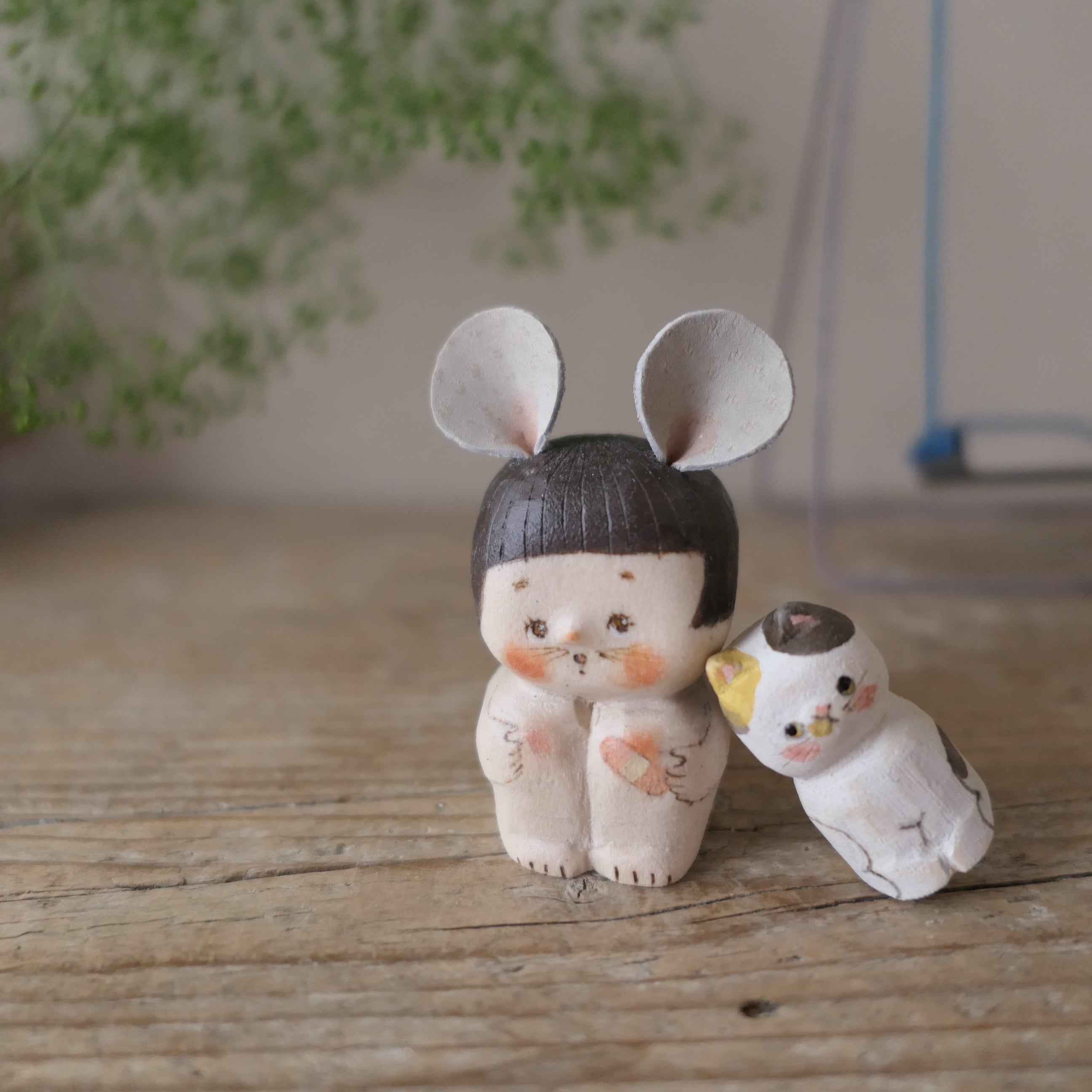木彫り・しゃがみの子「お遊戯会はネズミの子」 2