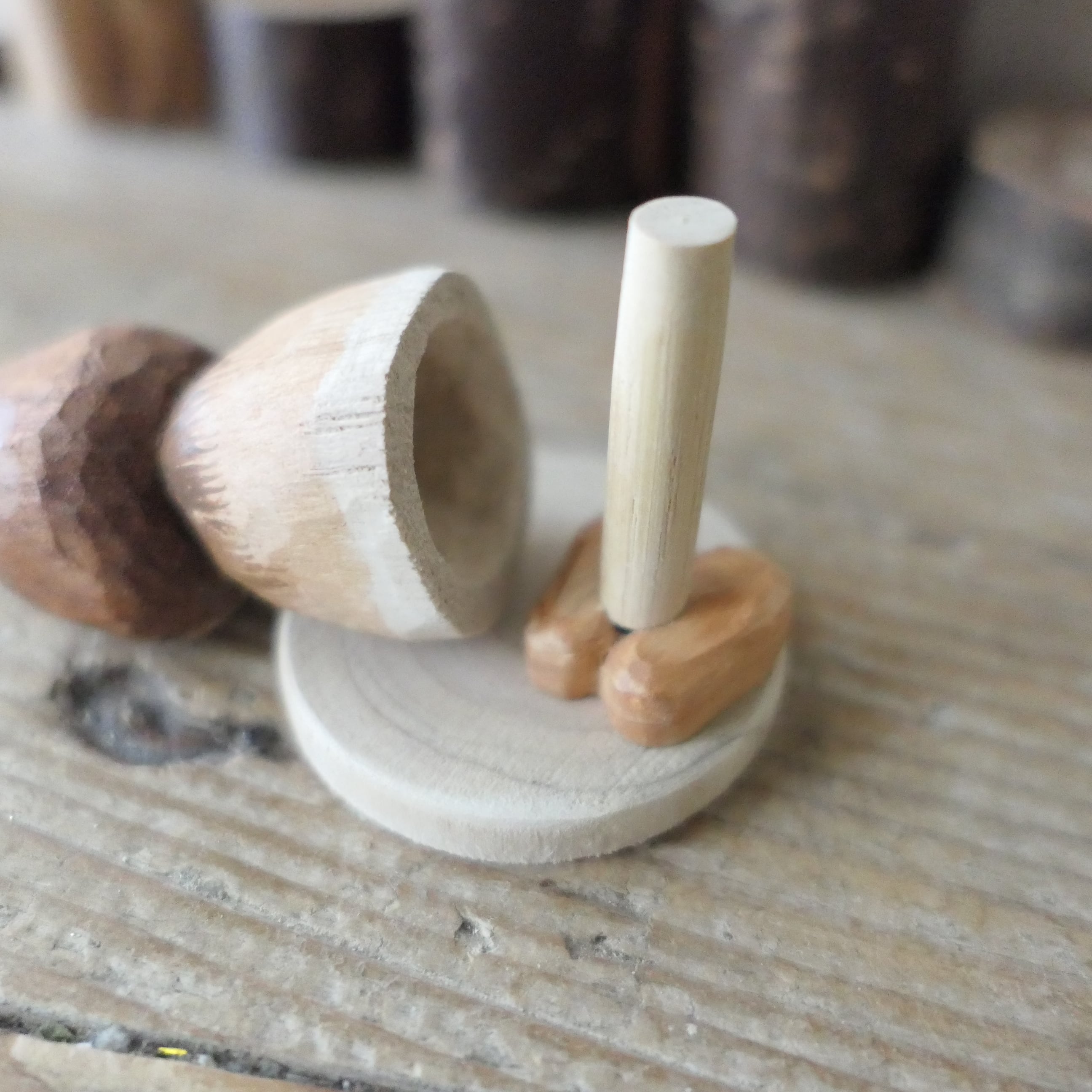 *身体と足が離れるようになっている、軸人形です。