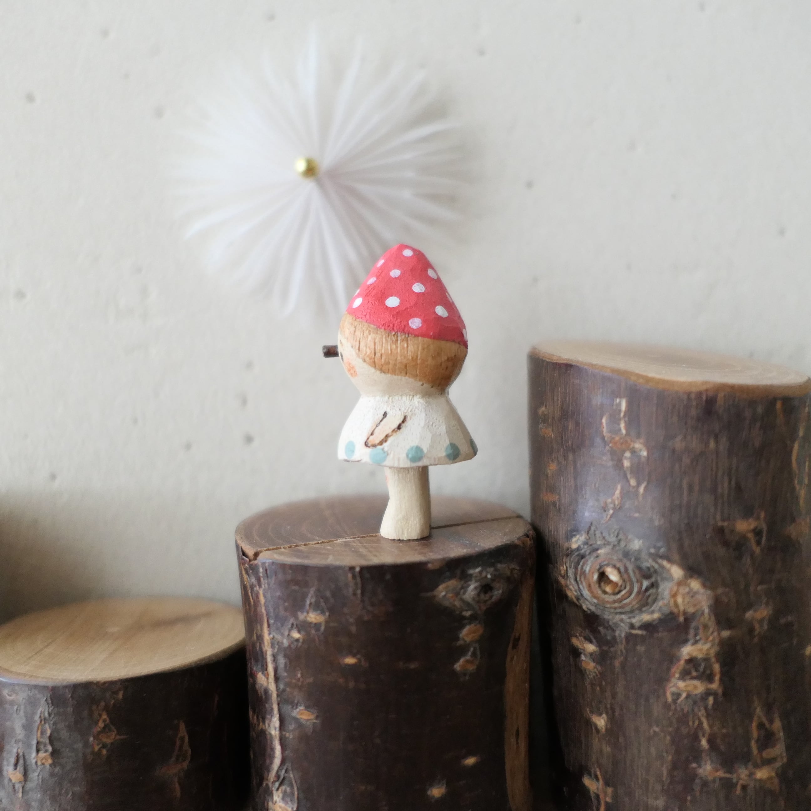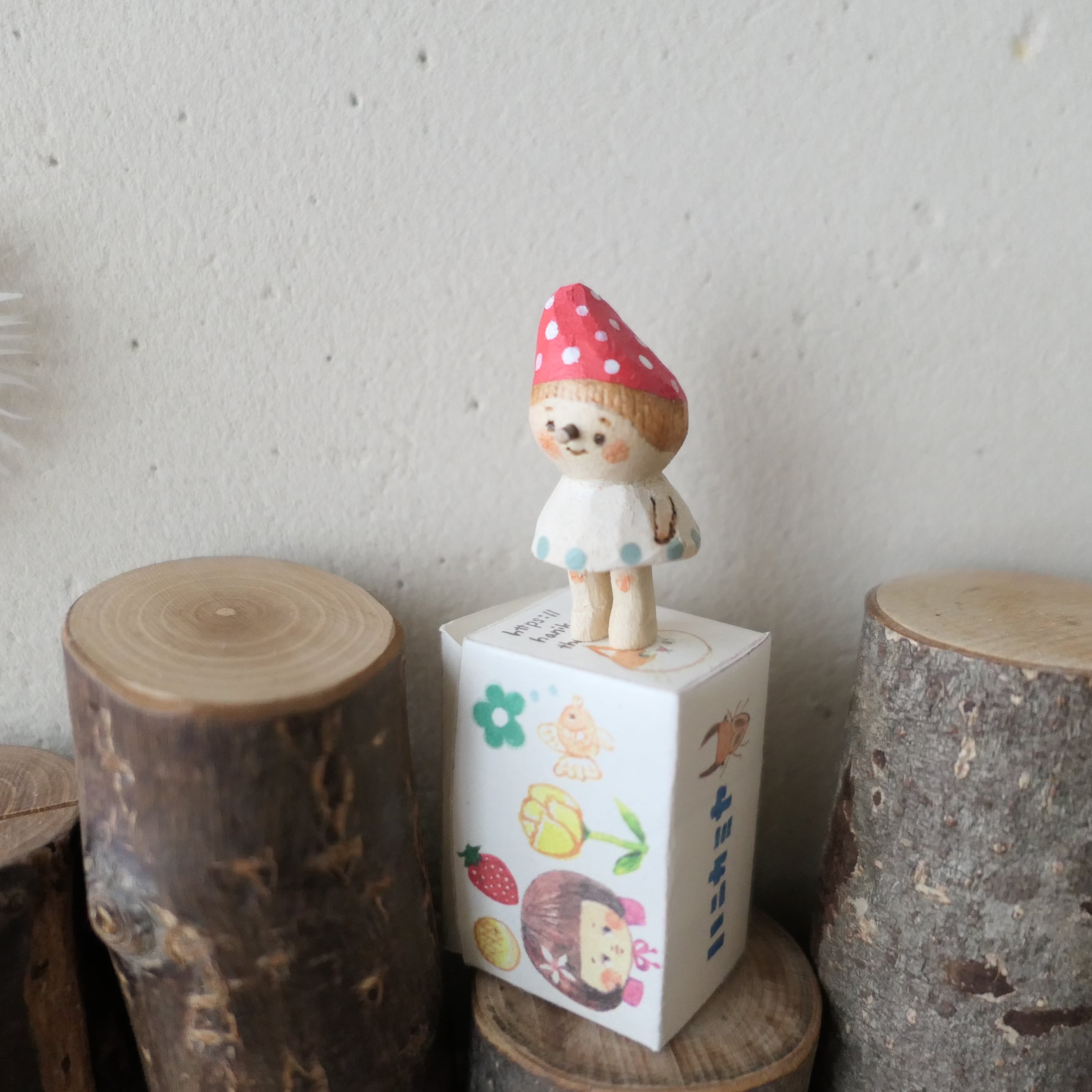木彫り「キノコの子mini」箱入り娘・2