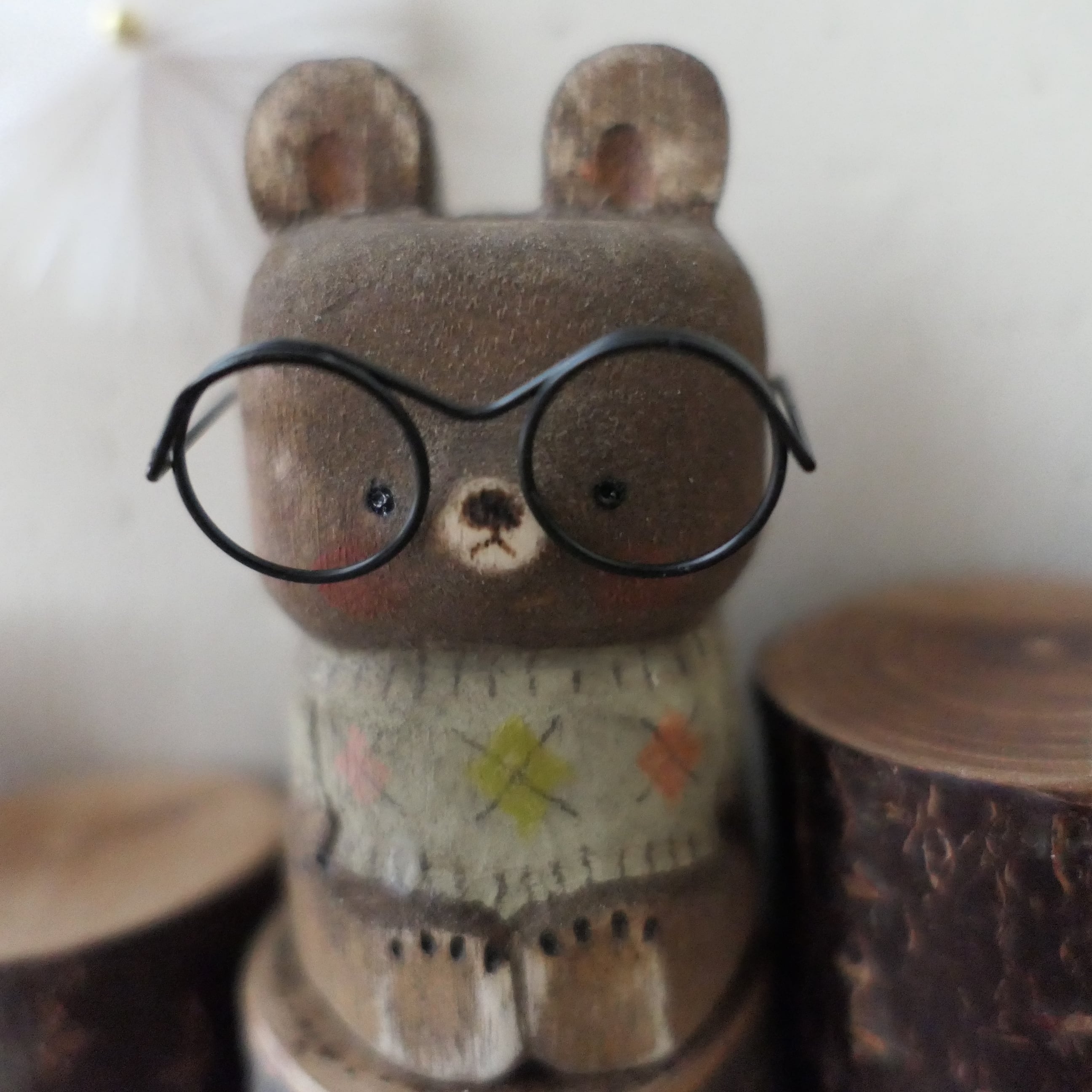 木彫り・メガネクマ(大)ウィンターバージョン