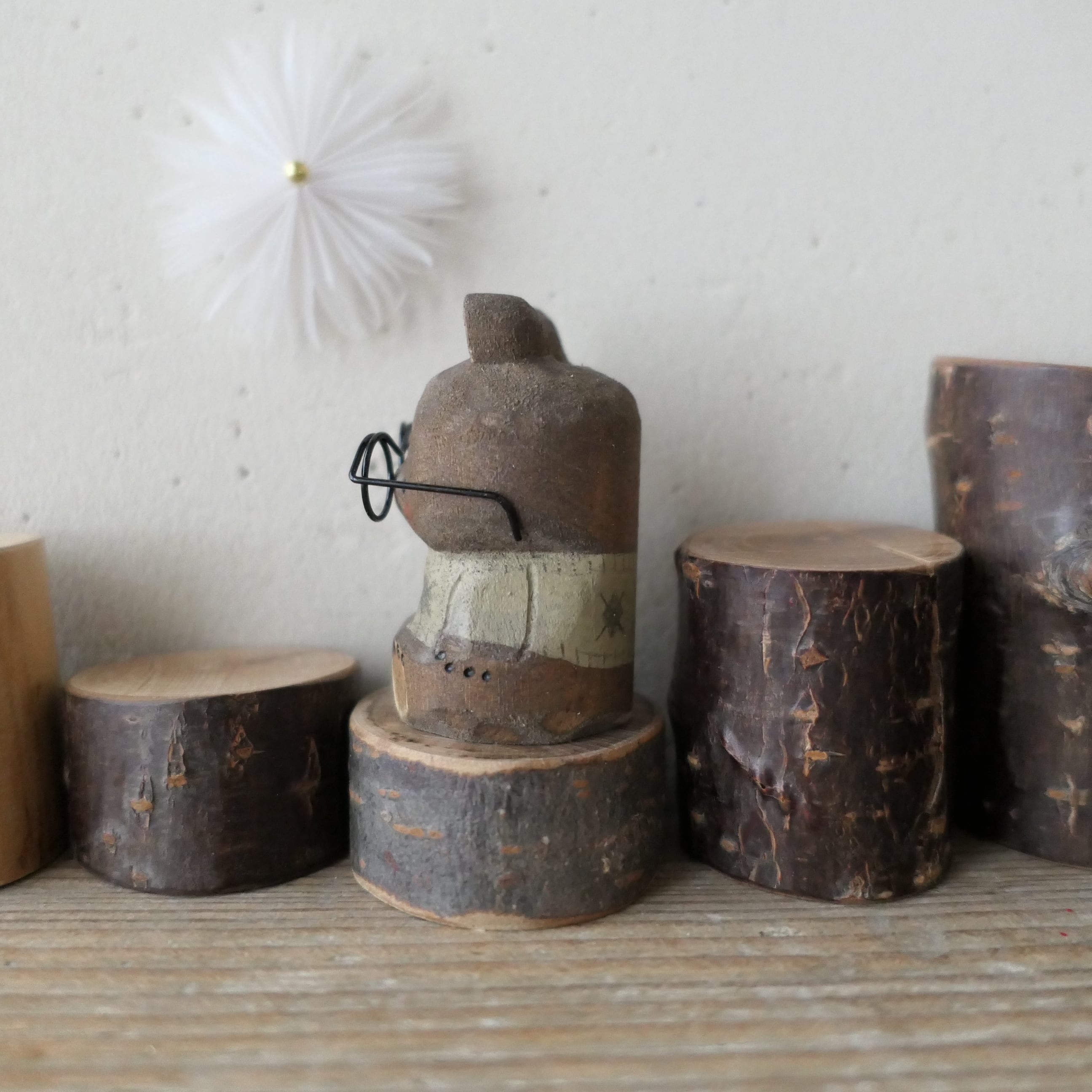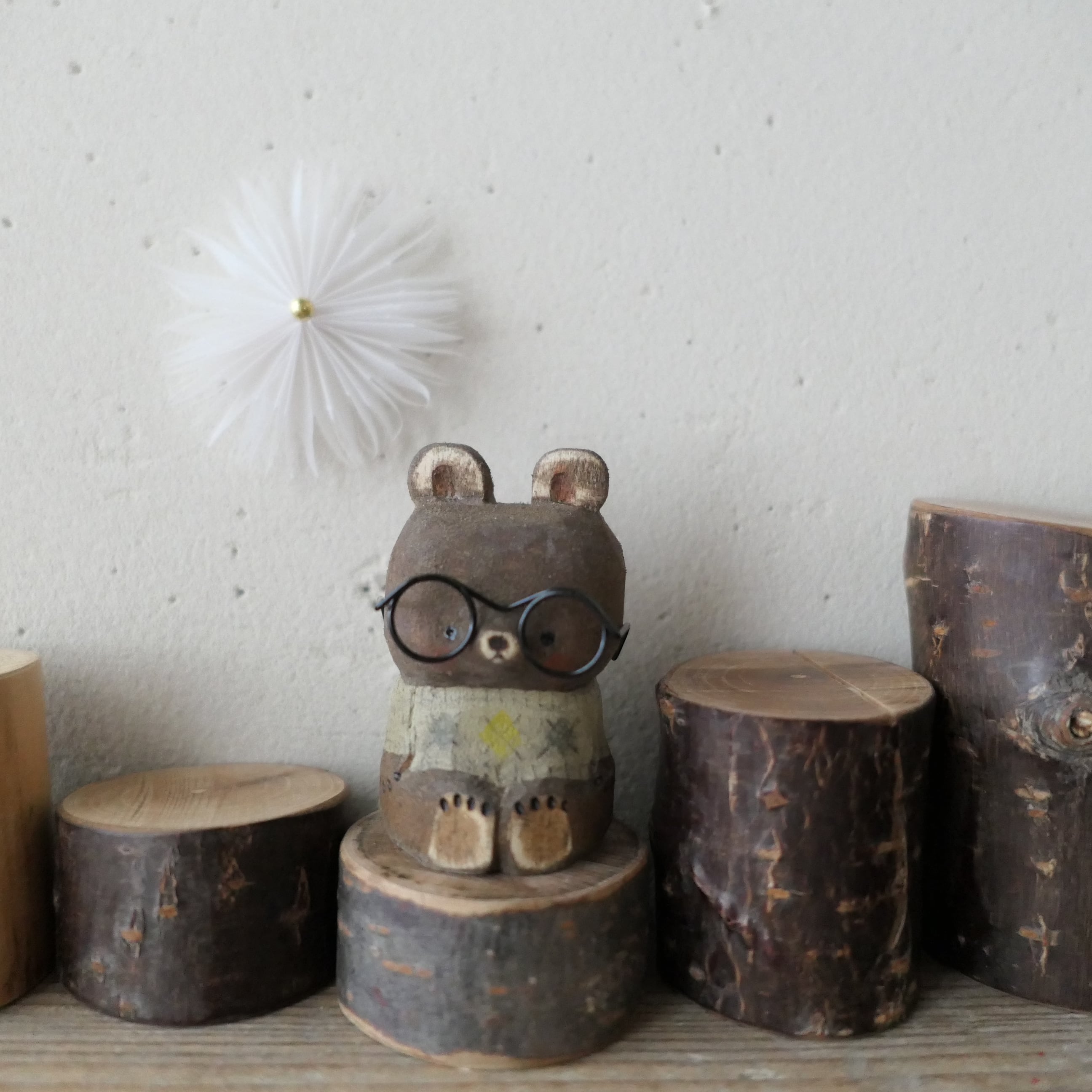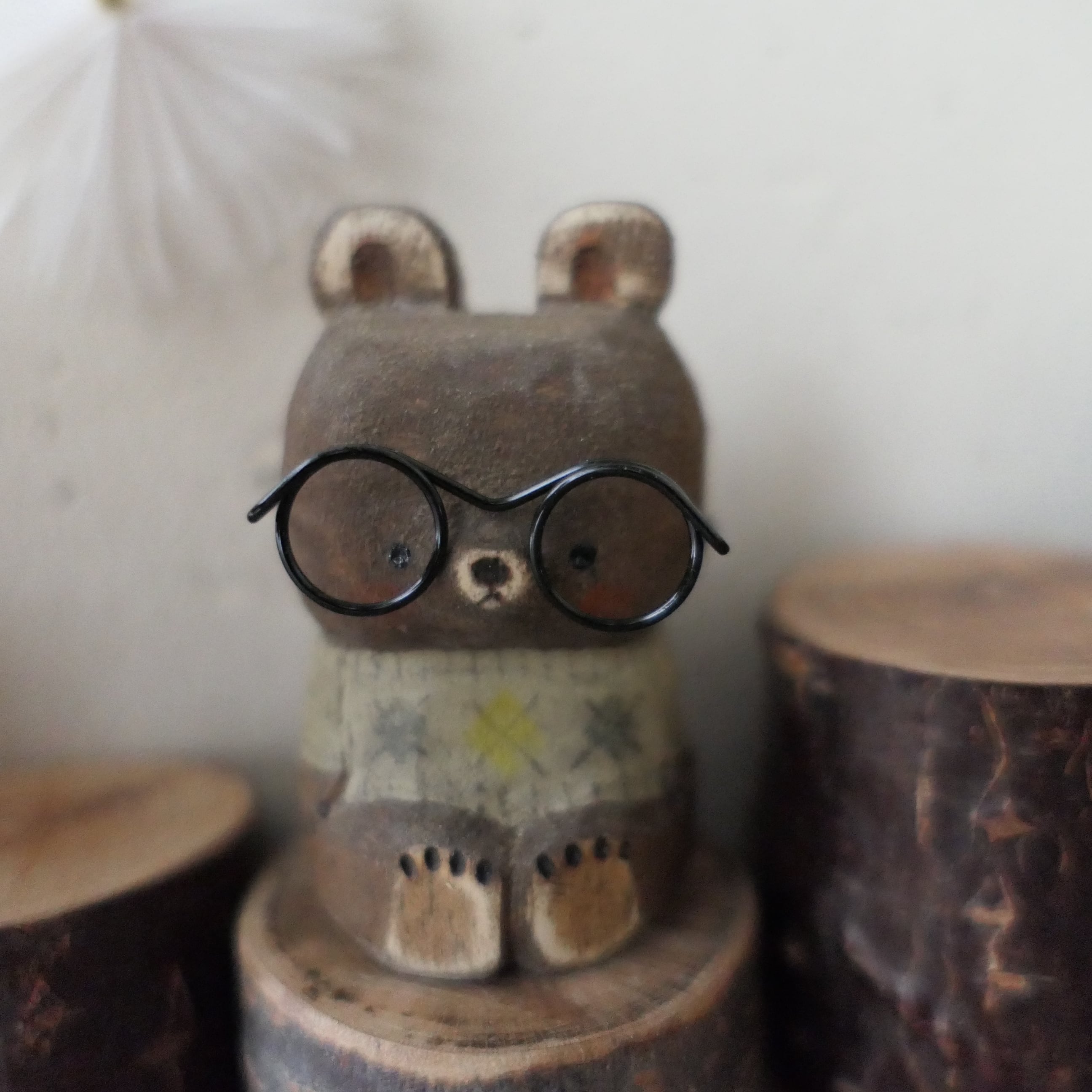 木彫りのメガネ熊。セーター着せました。