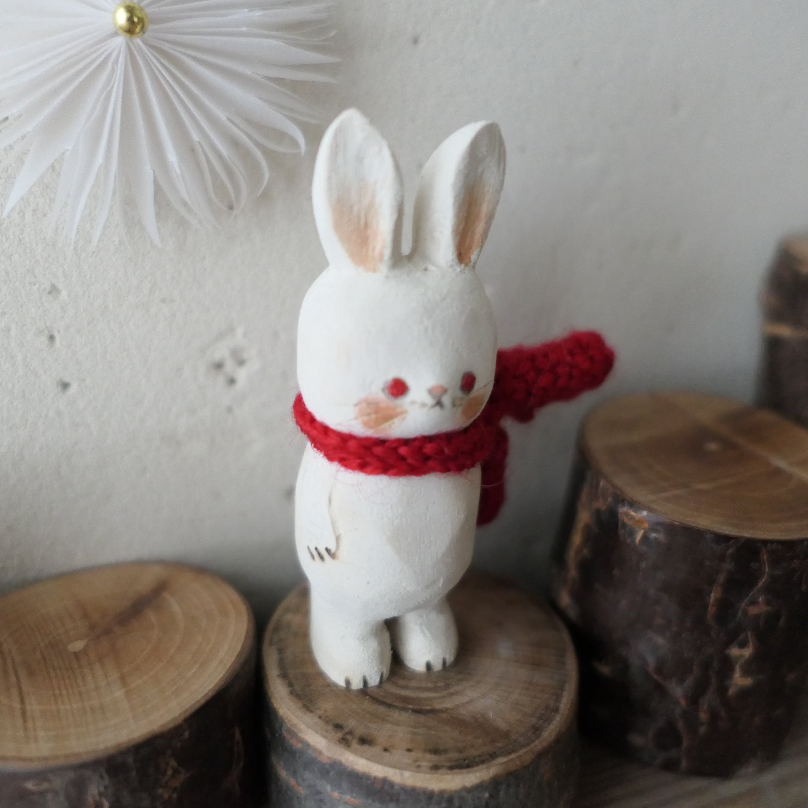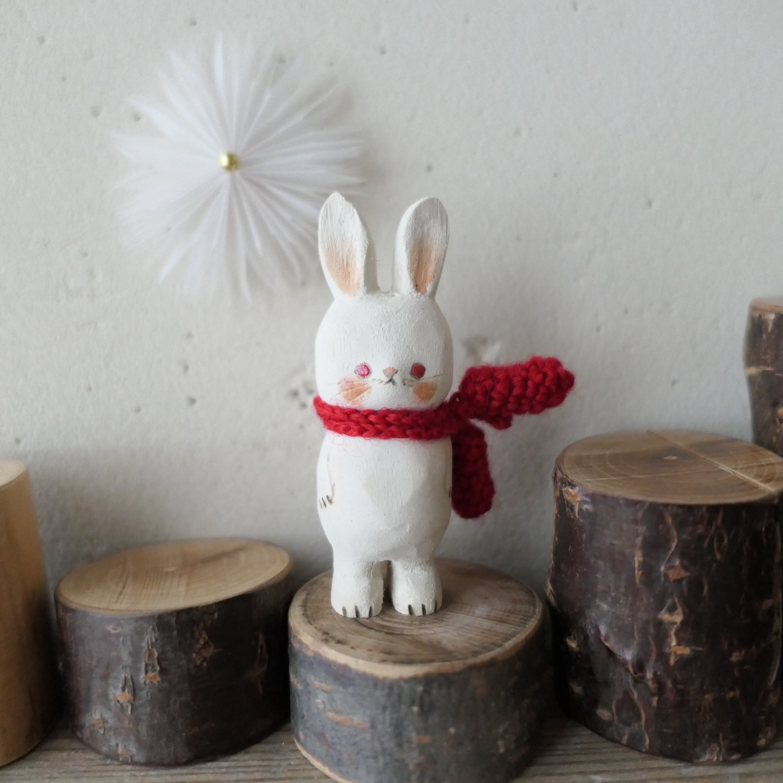 木彫り・立ちうさぎ(ミトンマフラー)1