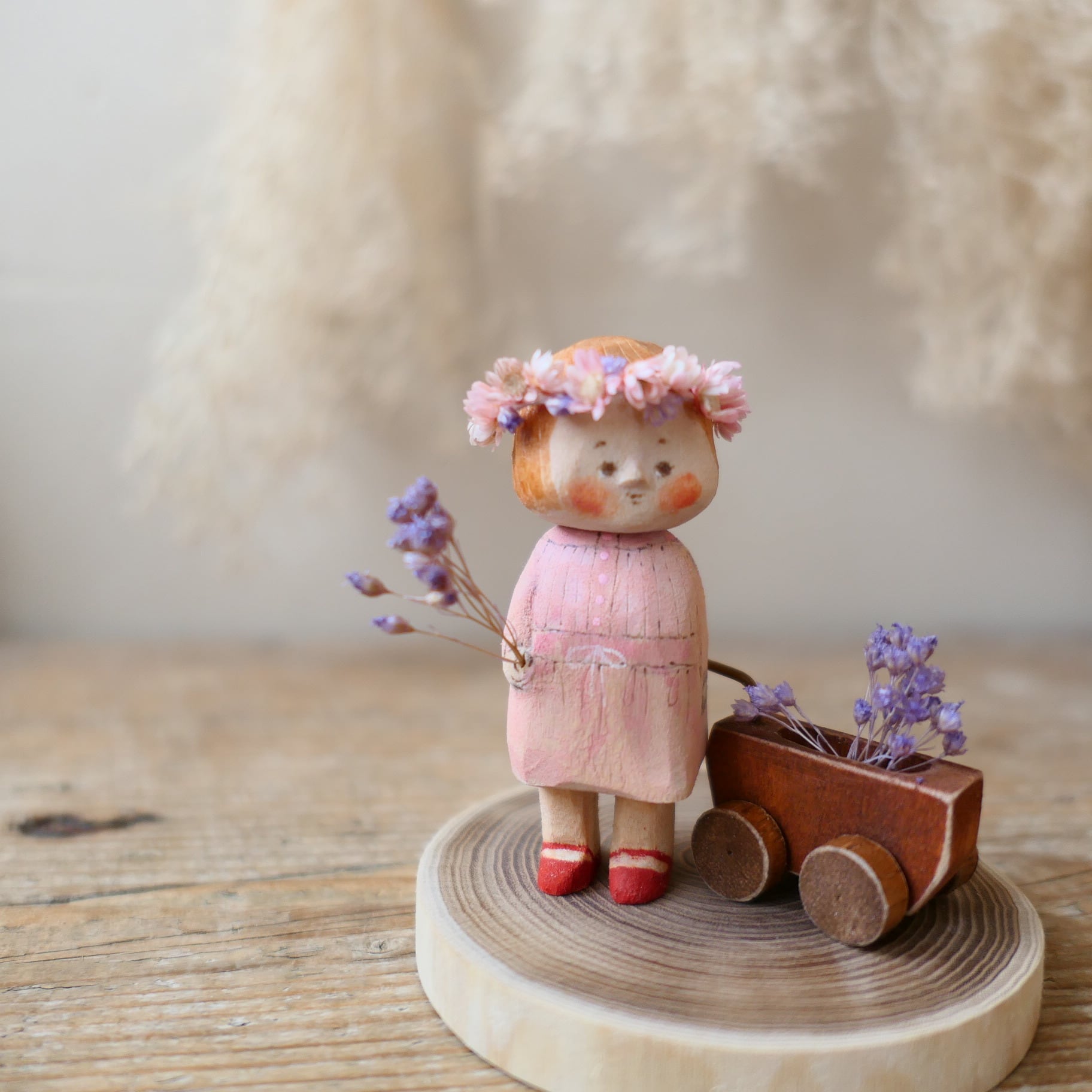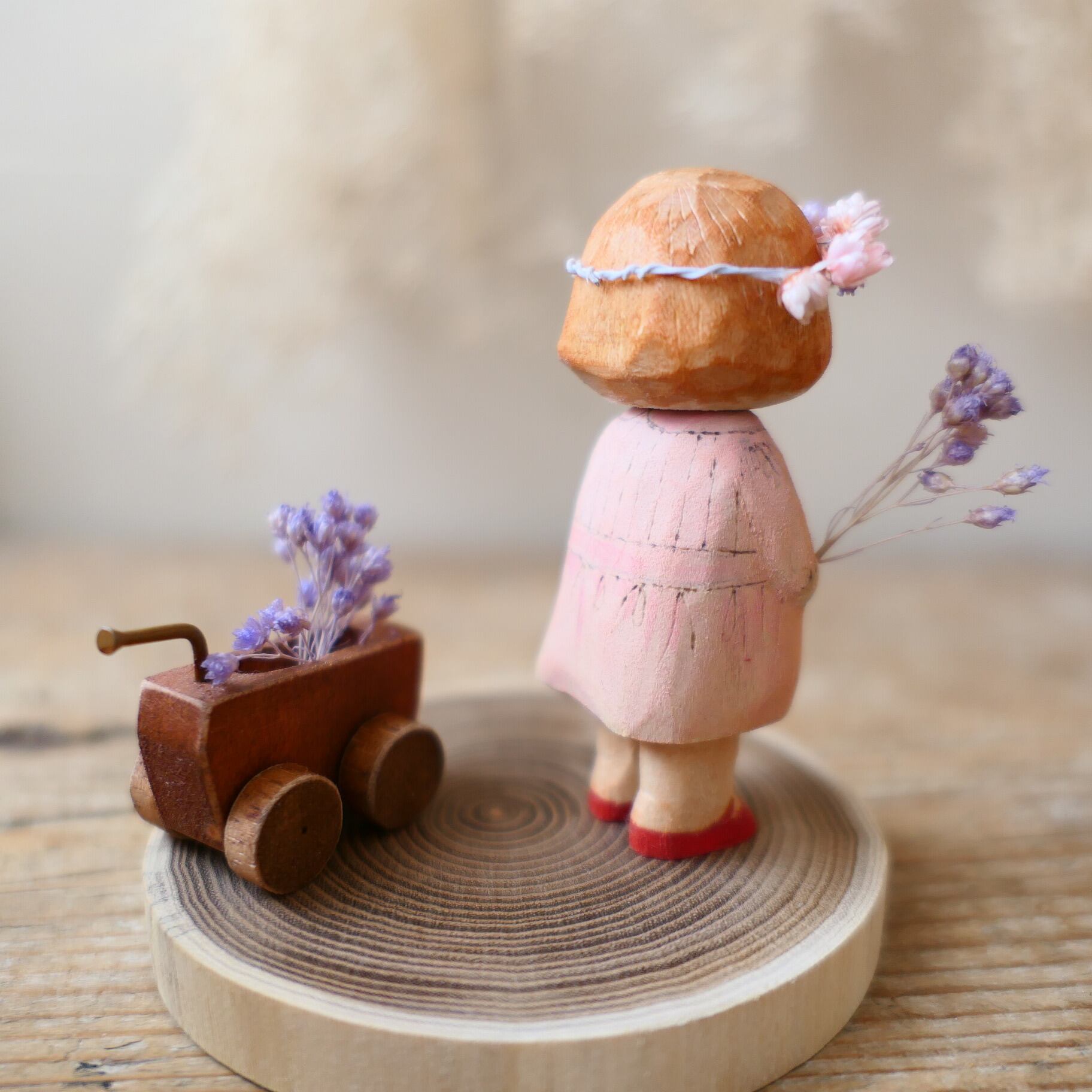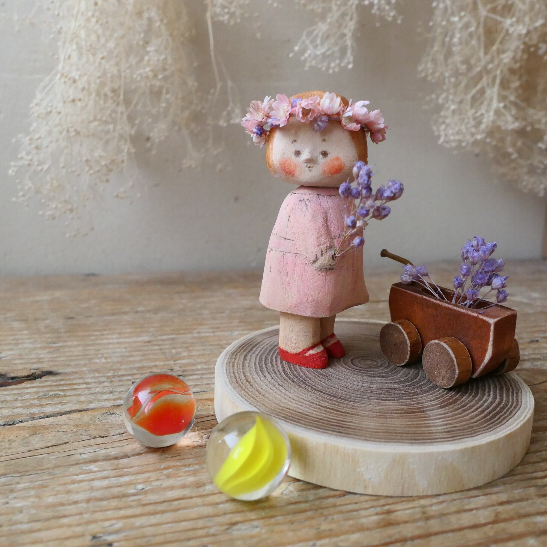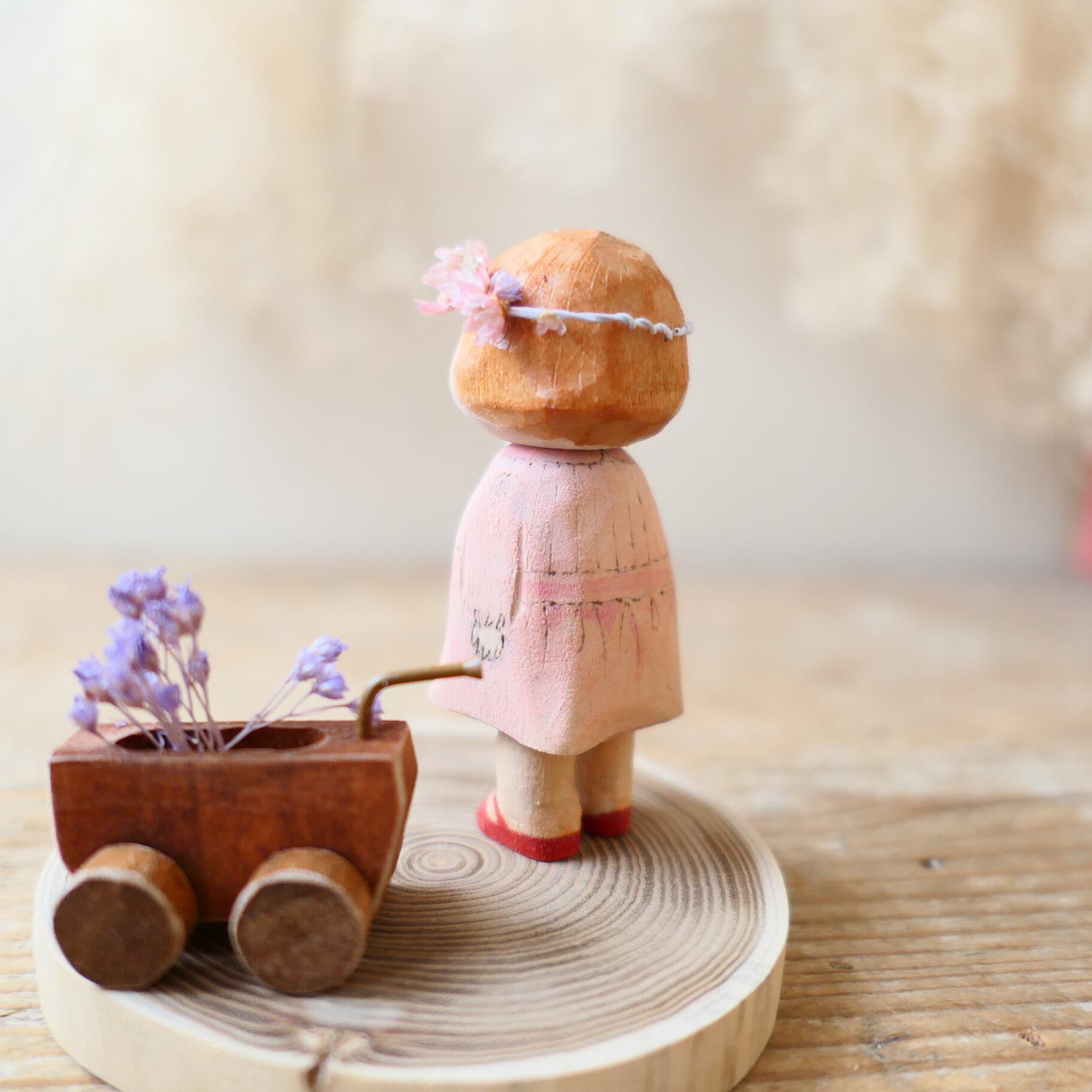 人形(シナ材) 花車(イチョウの木、丸棒)