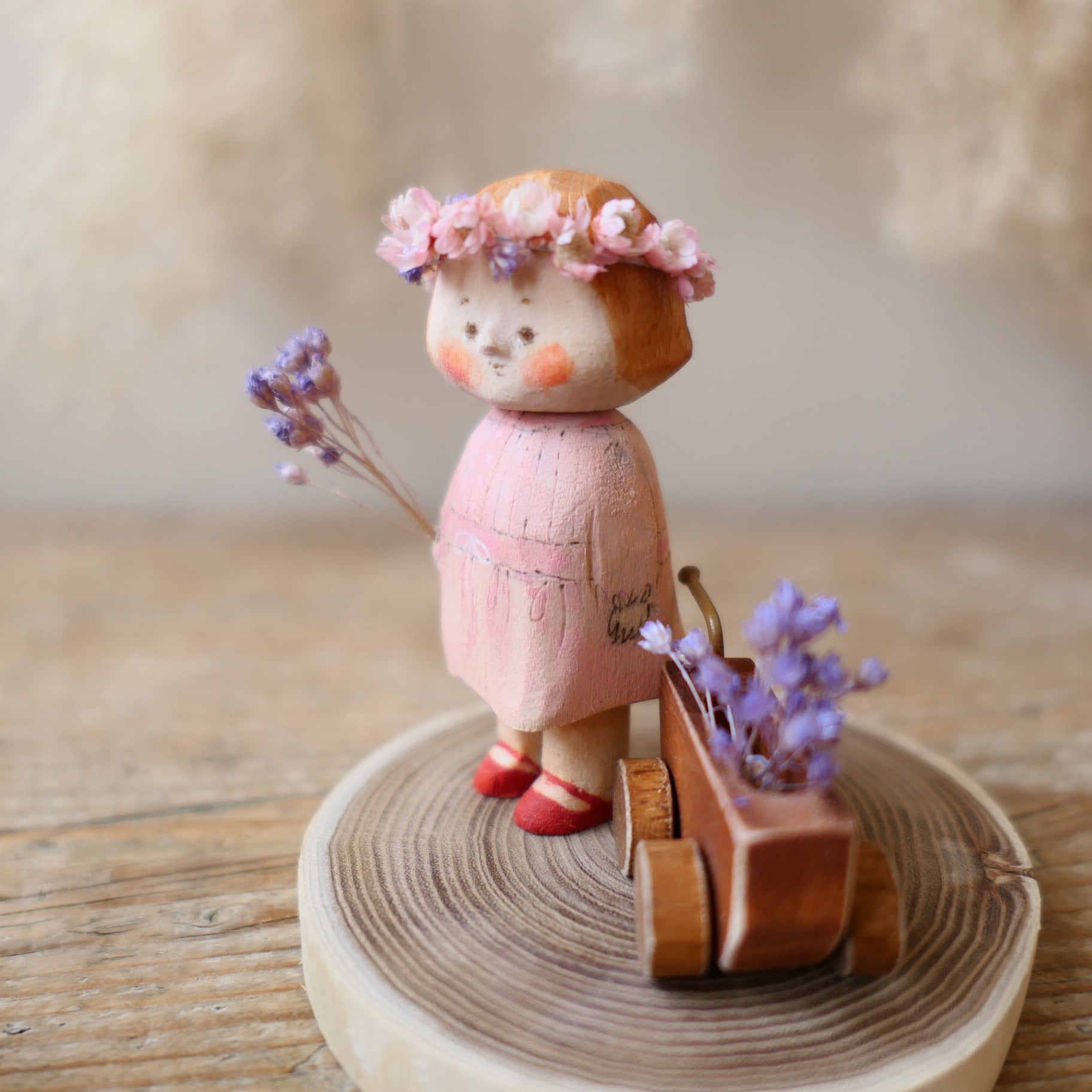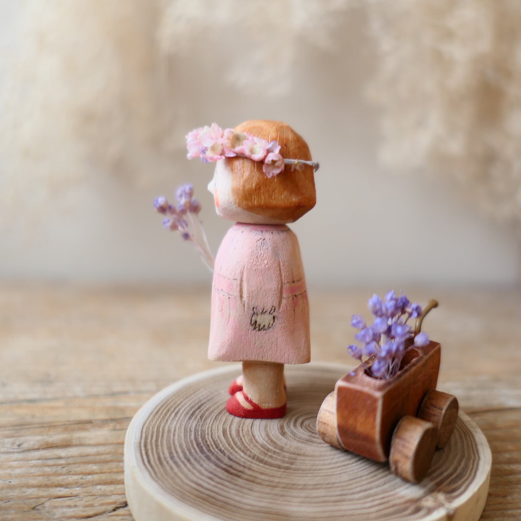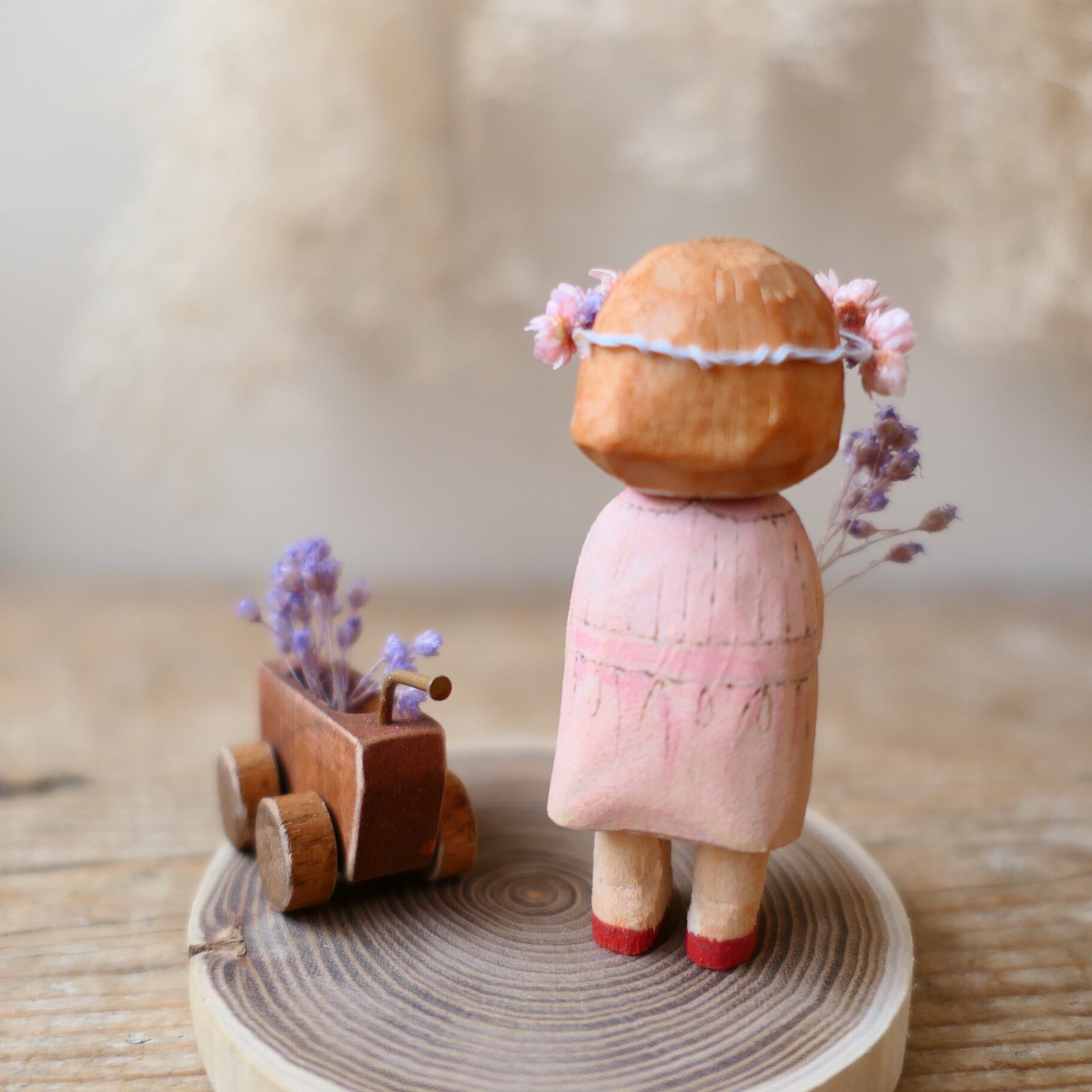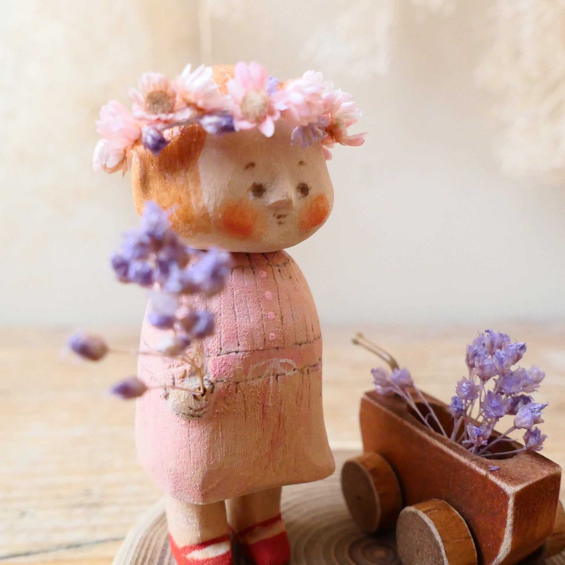 人形(シナ材) 花車(イチョウの木、丸棒)