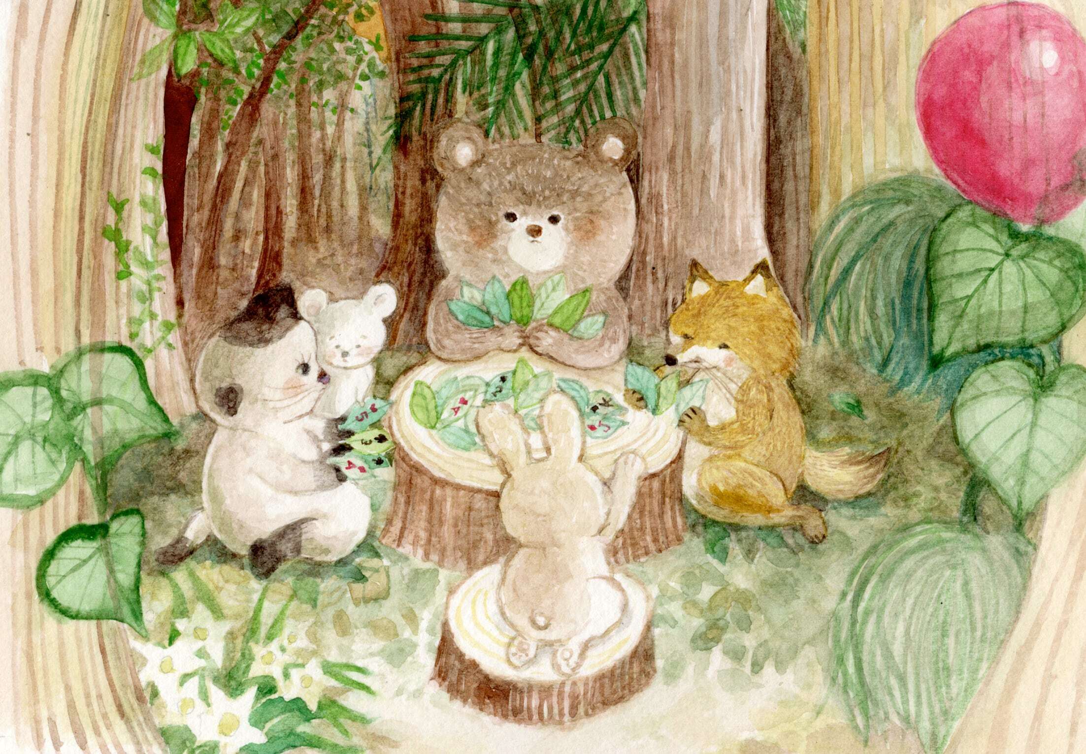 イラスト原画「葉っぱのカードゲーム」