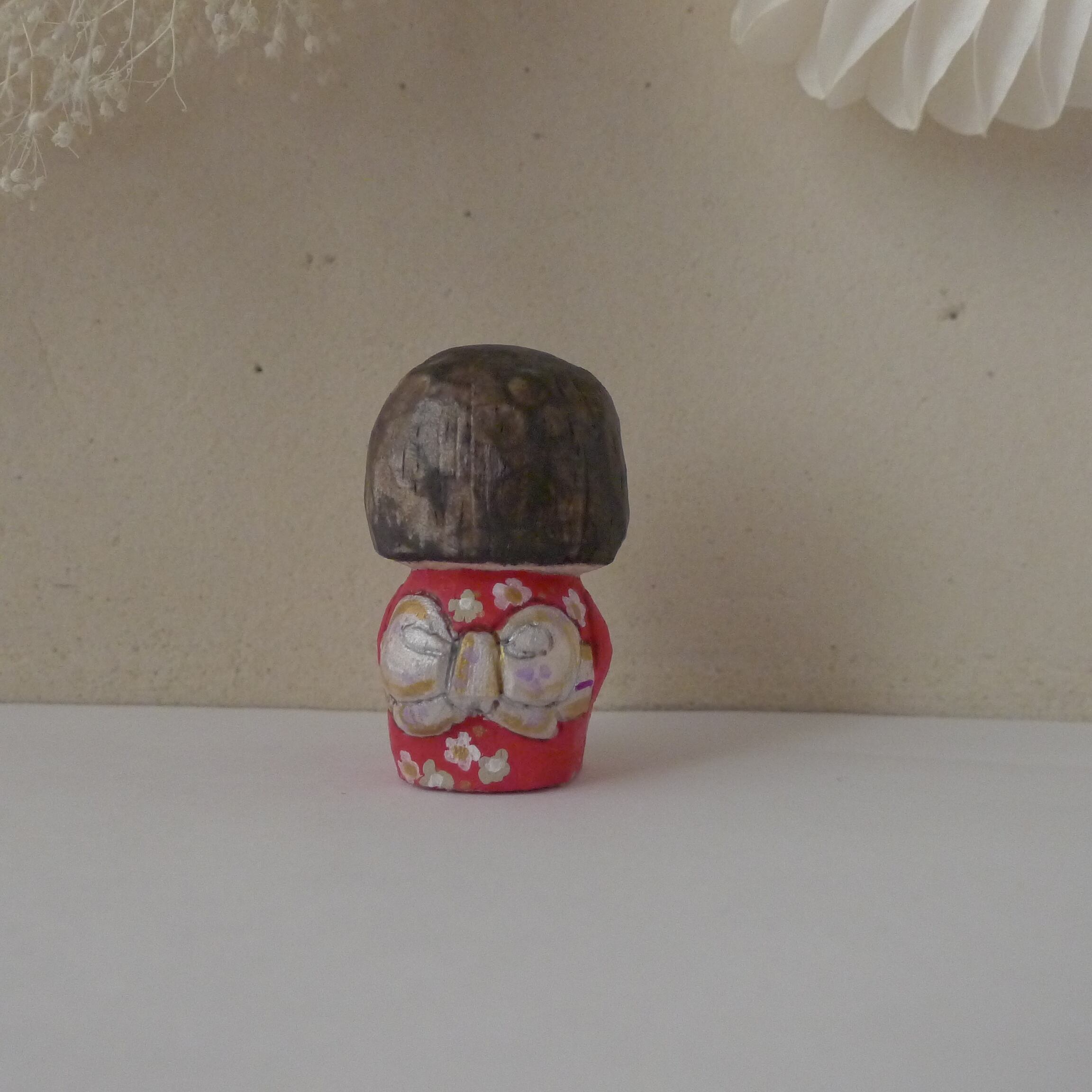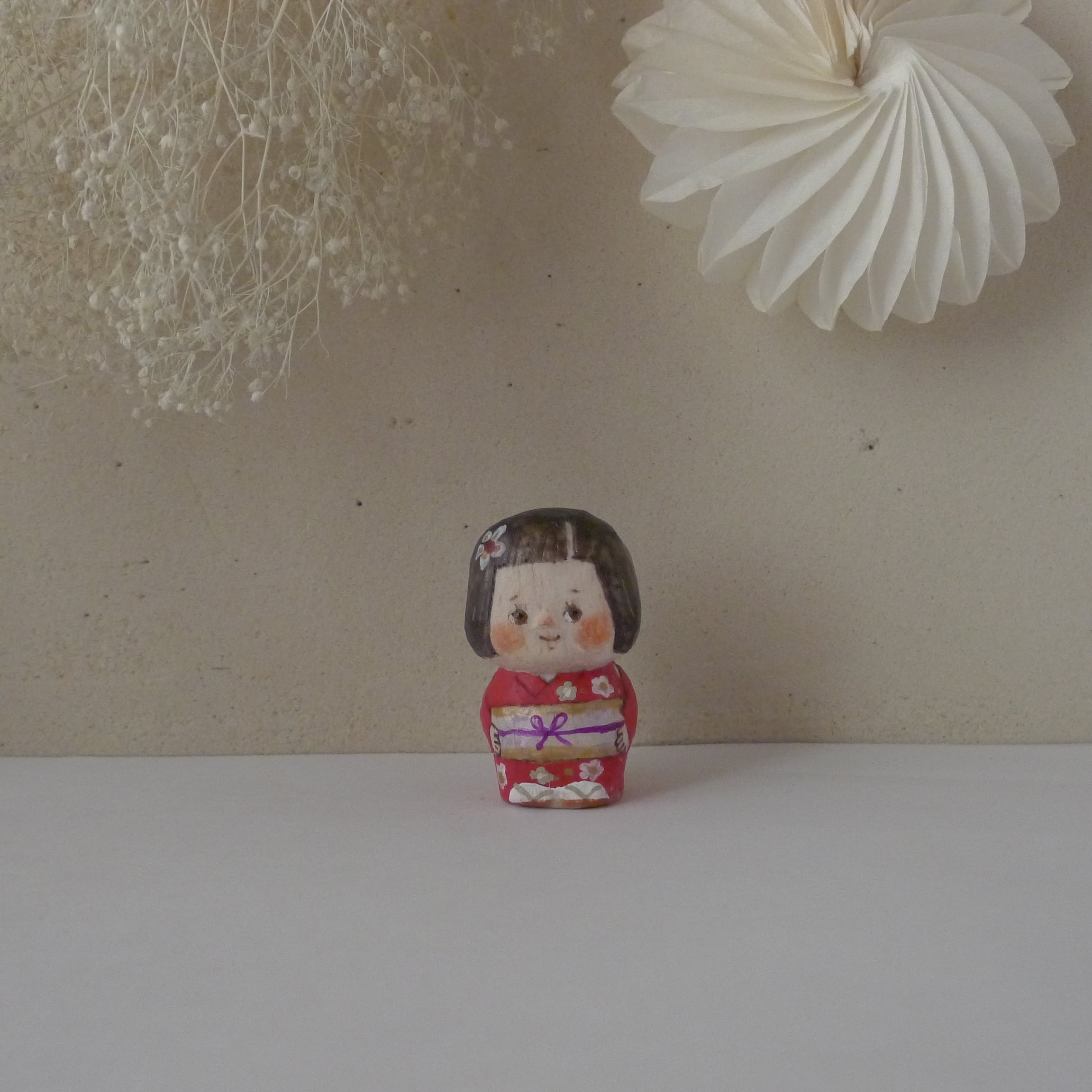 コロポックン人形「晴れ着」。お正月、晴れ着を着ておすまし笑顔さん♪