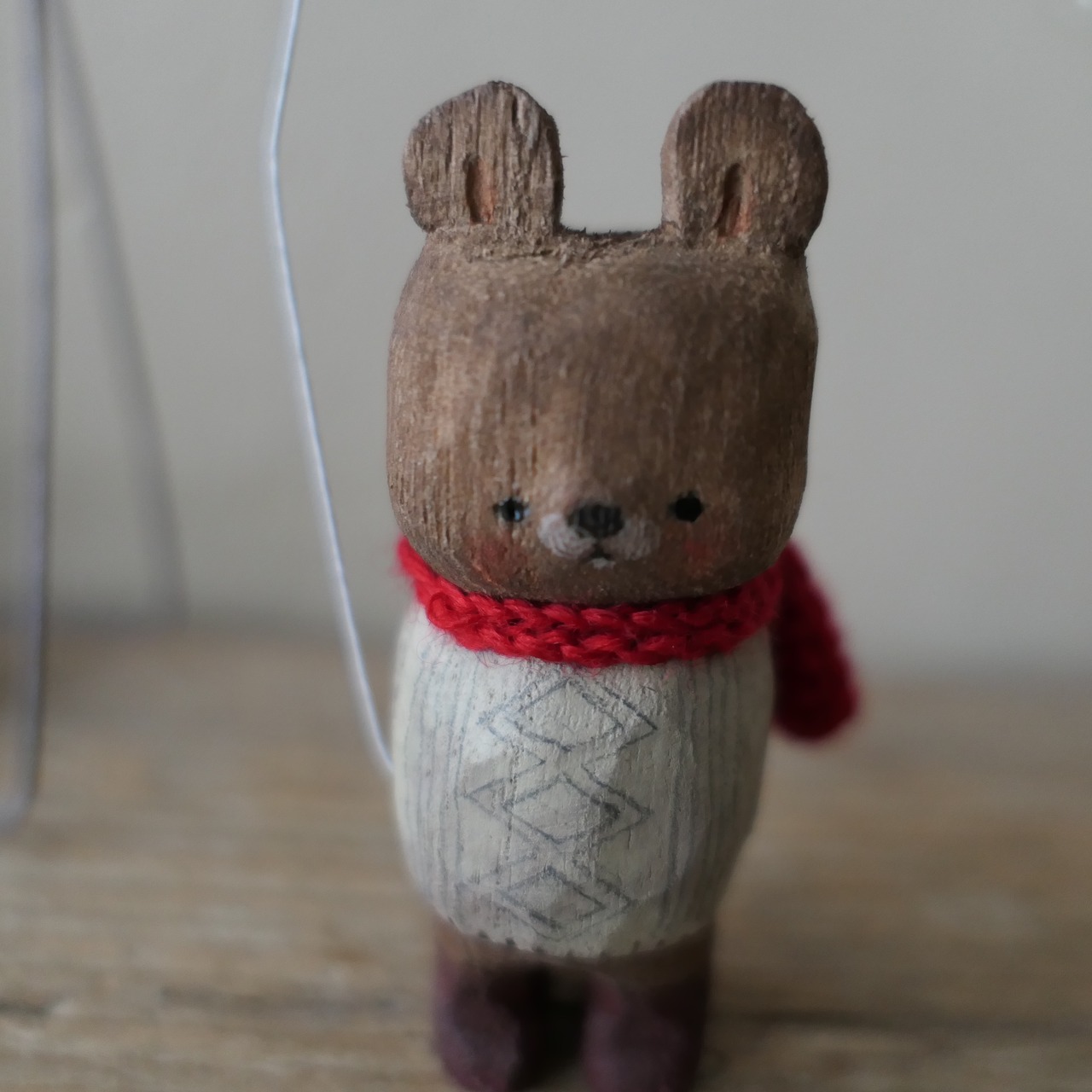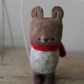 少し寂しげな表情が愛おしい熊さん。ぬくぬくセーターとミトンマフラー巻きました.